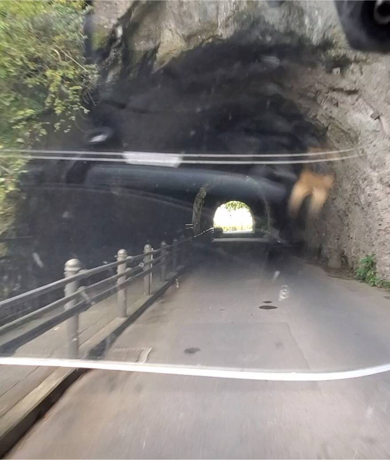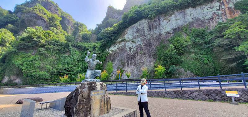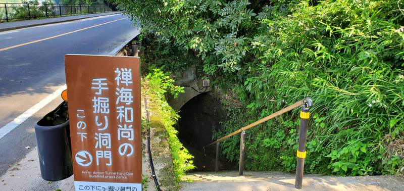 そのむかし、そのばしょはがけにみちがありました。おおくのひとがおっこちるのをみたおしょうさんが、よーしみんながあんぜんにとおれるどうろをつくろうとおもい、30ねんかけてトンネルをのみでほりました。どれだけのひとがたすかっただろう。ヒーローだね。よいこのみんな、おそとにでるときはぼうしとマスクをつけようね。