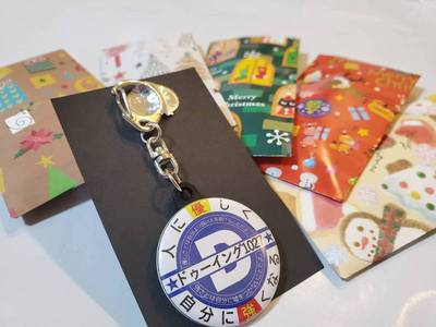 クリスマスプレゼントのキーホルダーをくばりはじめたよ