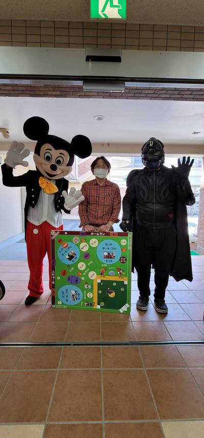 そのご ほうもんさきの にわのしばふのうえで 野球ゲームをしたよ。
