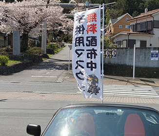 マスクを配るときに目立つようにのぼりを装着