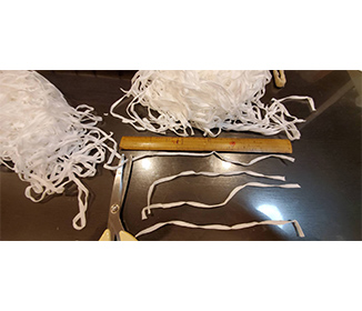 ゴムひもを切ります